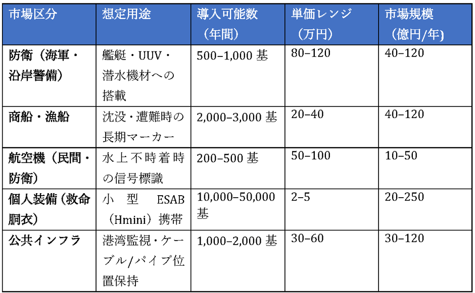 → 500–1,000基/年 (既存のEPIRB更新需要+UUV増勢が背景)