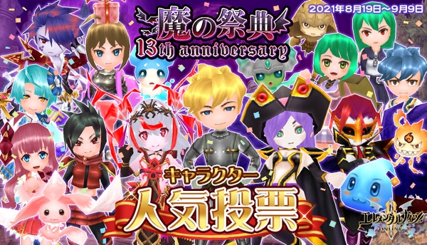 株式会社ウインライトは、本格MMORPG『エレメンタルナイツオンラインR』で、8月19日メンテナンス後より、エレナイ13周年特別企画「エレナイ13周年 魔の祭典」の第2弾キャンペーンを開始いたします。