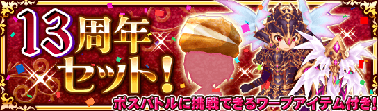 第2弾では、13周年記念ガチャ・アイテムセットの販売、13周年記念クエスト・バトル、スクショキャンペーン、キャラクター人気投票などを開催いたします。