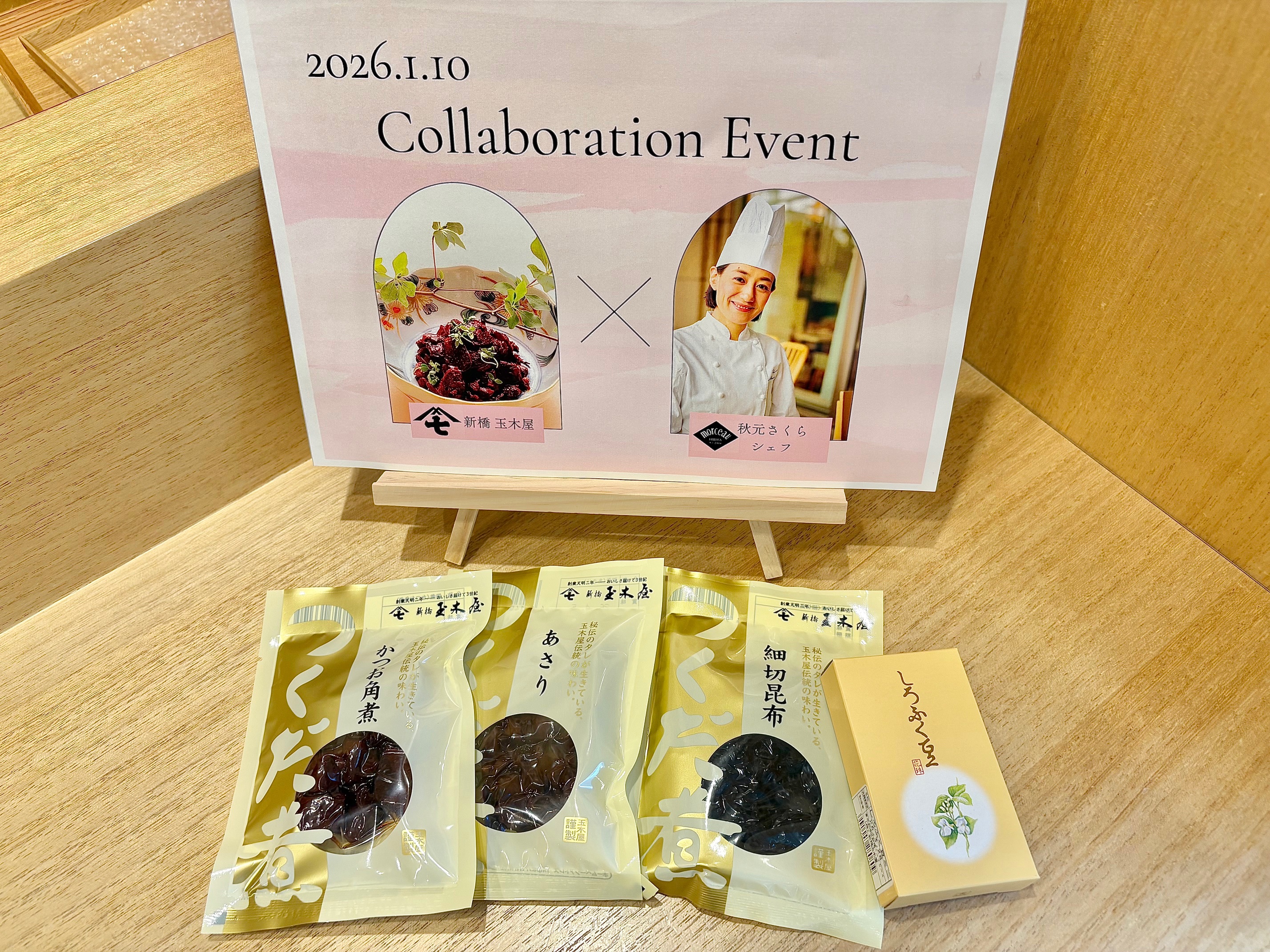 1782年創業の佃煮の老舗「新橋玉木屋」(株式会社新橋玉木屋/東京都港区、代表取締役社長:田巻 恭子)は、東京都の「江戸東京きらりプロジェクト」の一環として、都内の有名レストランシェフとコラボレーションした限定イベントを開催しました。2025年10月21日と11月12日には、練馬区石神井町の「PIZZERIA GTALIA DA FILIPPO(ピッツェリア ジターリア ダ フィリッポ)」オーナーシェフ・岩澤正和氏と2026年1月10日と2月7日には千代田区有楽町の「morceau(モルソー)」オーナーシェフ・秋元さくら氏と、それぞれイベントを実施しました。