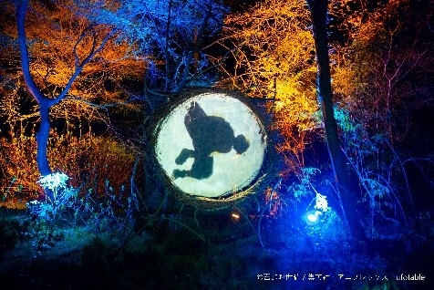 ①【夜イベント】ニジゲンノモリ × 『鬼滅の刃』「ナイトウォーク那田蜘蛛山」1.2 ㎞の夜の森を歩きながら、プロジェクションマッピング等で再現された「鬼滅の刃」の世界を体感。参加者は、「隠」として「那田蜘蛛山」を舞台に、竈門炭治郎と仲間たちが繰り広げる鬼との戦いを記録する任務にチャレンジ。任務を果たした参加者は戦いの報告書を手に入れることができる。