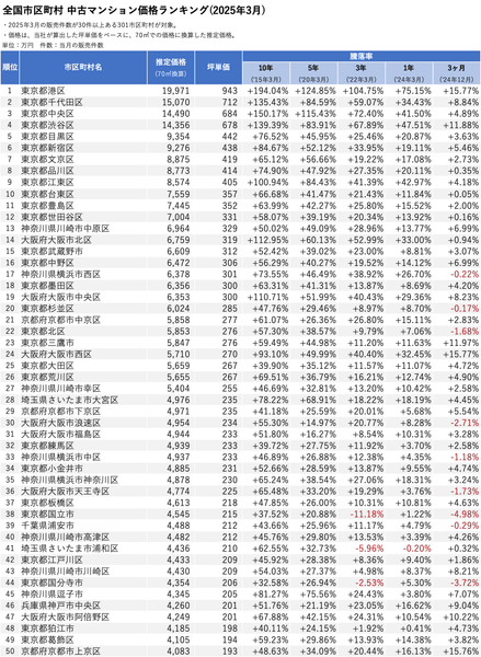 全国市区町村 中古マンション価格騰落率ランキング(2025年3月_3・5・10年前比較)
