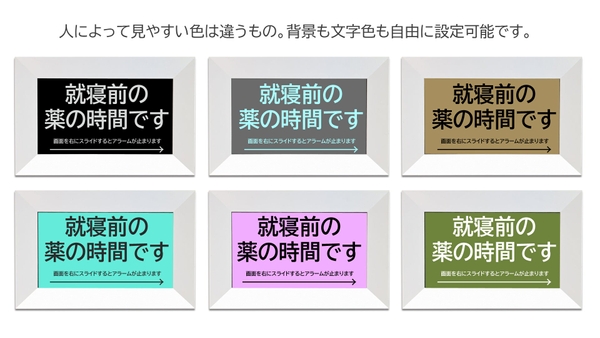 文字と背景のどちらも変更可能なので、あなただけ色の組み合わせを探してみてくださいね