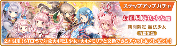 1月1日00:00より『有償限定 ステップアップガチャ お正月魔法少女編』を開始いたしました。