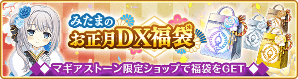 有償マギアストーンのみで購入できる特別なアイテムセットと無償を含むマギアストーンで購入できる特別なアイテムセットを販売しております。福袋は全4種類あり、以下のアイテムが封入されています。