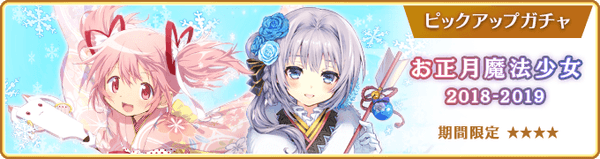 本ガチャより、2018年から2019年に登場したお正月の★4魔法少女とメモリアが期間限定で登場いたしました。