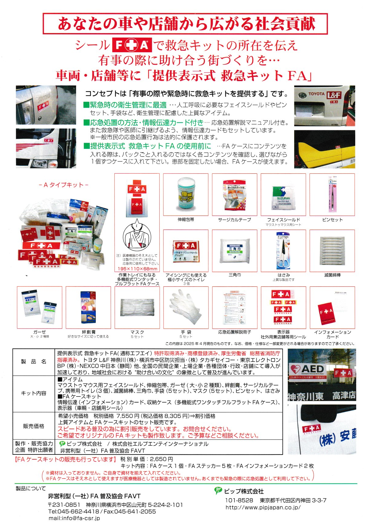 ※2 「提供表示式救急キットFA」通称FAキットは特許取得済み(7093494)FAステッカー等は商標登録済み(5136378 他)です。
