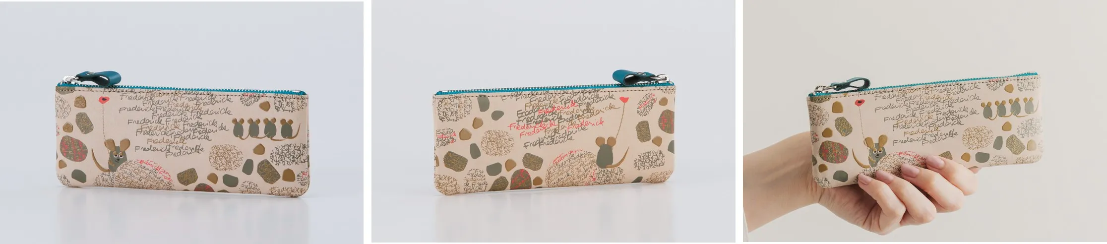 レオ・レオニ『フレデリック』×伝統工芸品「甲州印伝」 創業1582年の印傳屋が描いた「絵本作品コレクション」第2弾。 愛らしい後ろ姿もポイント!「財布」「ポーチ」「ペンケース」など全7種類。