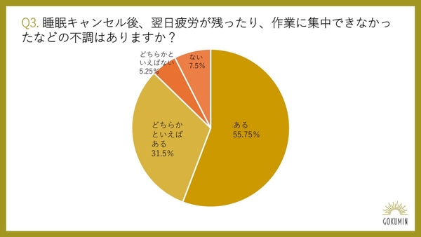 Q3:睡眠キャンセル後、翌日疲労が残ったり、作業に集中できなかったなどの不調はありますか?(単一回答)