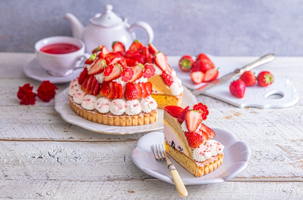 アールグレイの茶葉を練り込んだケークタルトにベルガモット香るアールグレイクリームといちごのクリームを重ねました。甘酸っぱいいちごと紅茶の香りをお楽しみいただけます。