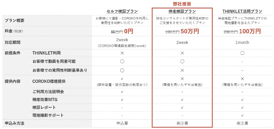 1.セルフ検証プラン:企業がCOROKOを自ら操作し、実用性を判断するプラン
