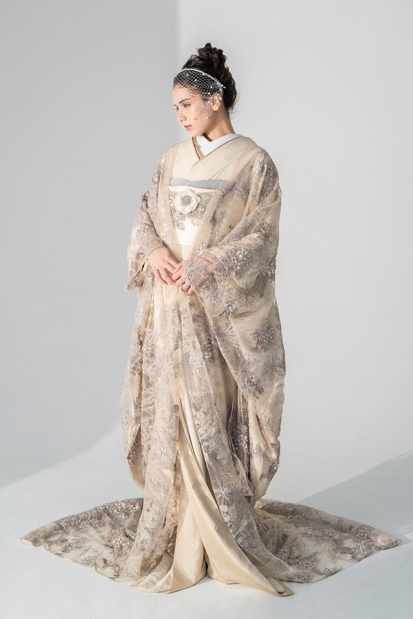 数年もの期間をかけて職人が手縫いし仕上げた一点物、紋様や装飾などトレンドを取り入れたモダンな一着は、花嫁様だけが袖を通せる特別な衣装です。格調高く個性的・豪華絢爛な色打掛をはじめ、細部までこだわり抜いたオリジナルのレース打掛などを取り揃えています。圧倒的な華やかさが感動をお届けします。