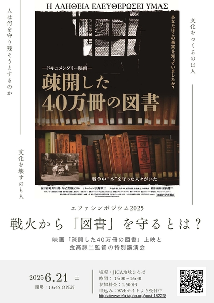 ※当日現金でお支払いをいただく場合は「【当日会場払い(1,500円)・出欠管理のみ】戦火から「図書を守る」とは?エファシンポジウム2025」をお選びください。会場の受付にて、お支払いのほど、よろしくお願いいたします。