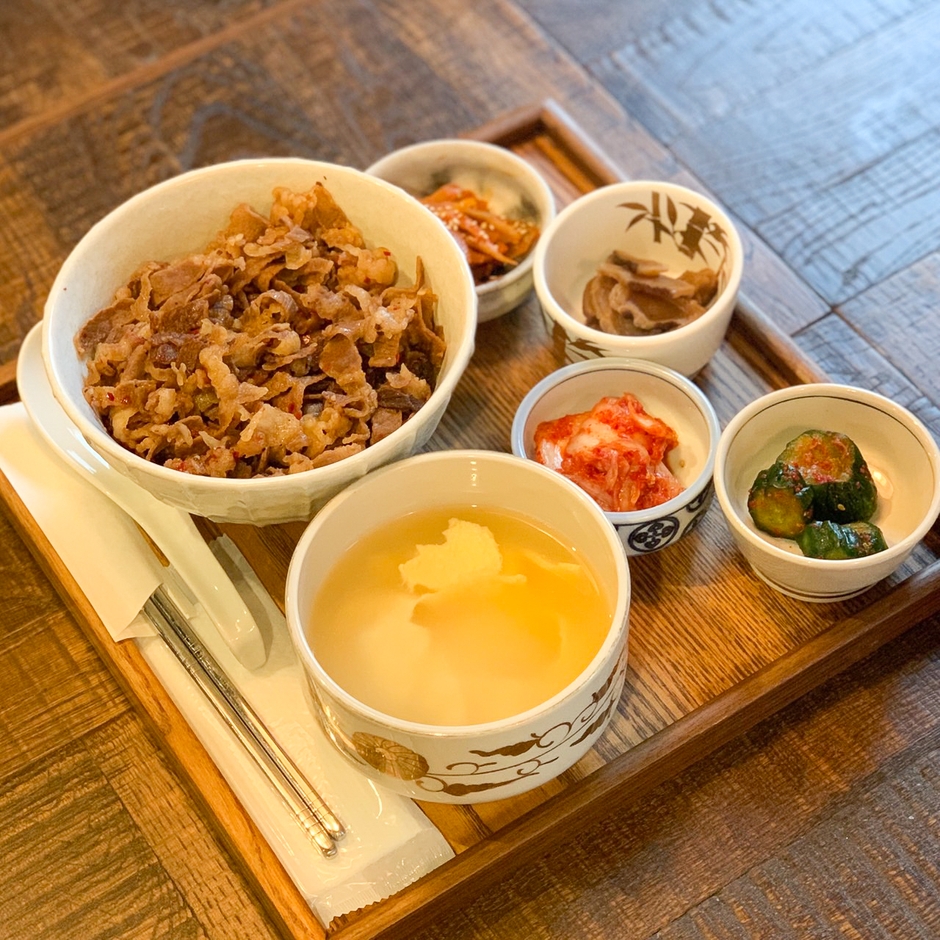 濃厚なプルコギ丼のお箸がすすむ合間に、京おばんざいのように一口ずつ選べて楽しめる健康にも配慮した女性に喜んでいただけるセットにいたしました。
