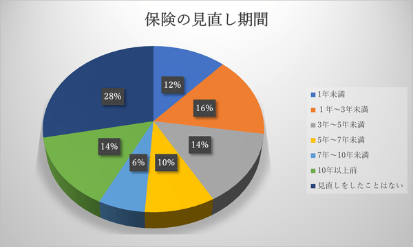 保険を見直す期間は人によってことなりますが、加入から7年以内に約半数の人が保険の見直しを行っています。