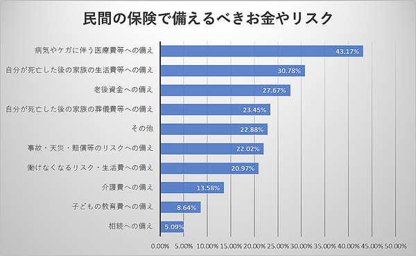 Q. 民間の保険で備えるべきお金やリスク等についてご自身の考えと一致するものをすべて選んでください。(複数回答可)