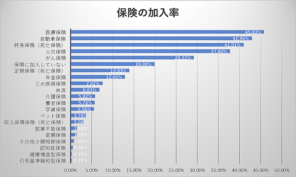 生命保険分野での個人の加入率の上位は以下の通りです。