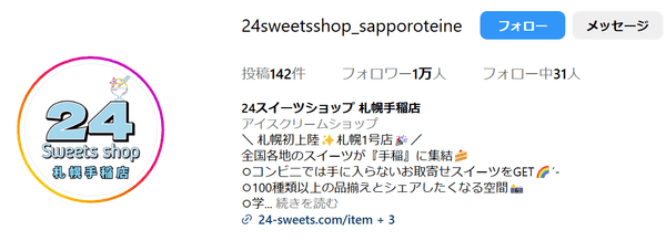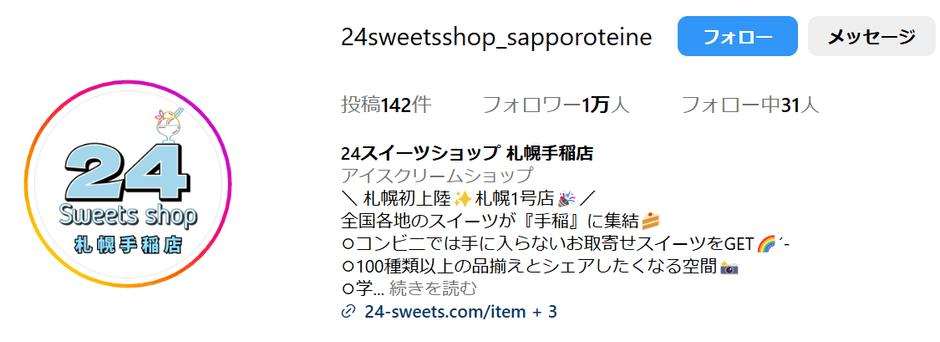 24スイーツショップ札幌手稲店:https://kukanhokkaido.co.jp/24-sweets-sapporoteine/