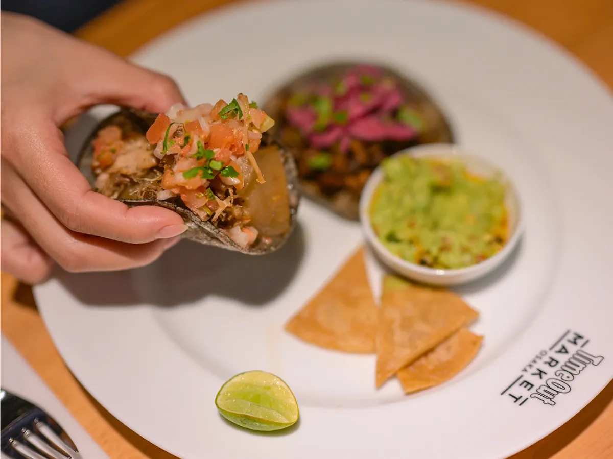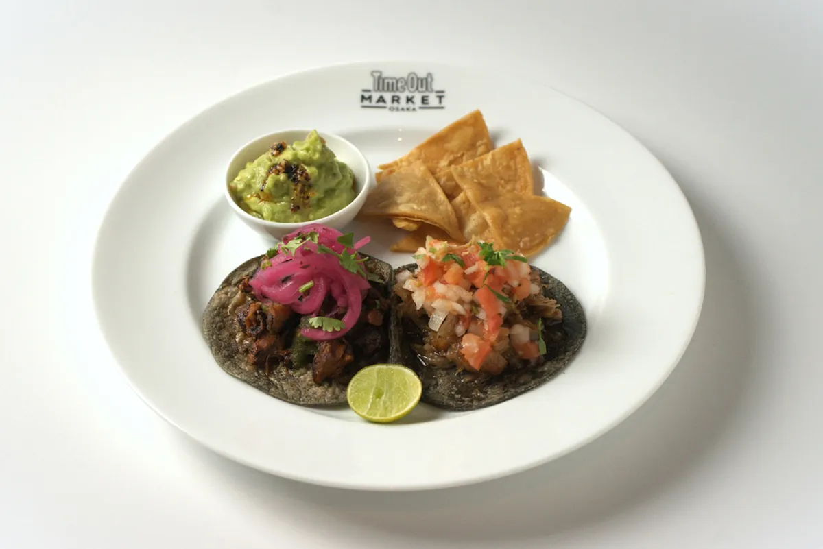 1ピースずつお好きなタコスを選べる、平日限定のお楽しみ。1人前サイズのワカモレとトルティーヤチップス付き。一皿でさまざまな味わいを楽しめます。※ビーフは+100円