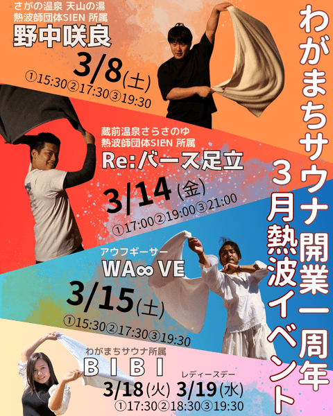 3/22(土):当店所属熱波師が総出演し、感謝の気持ちを込めた熱波イベントを実施!