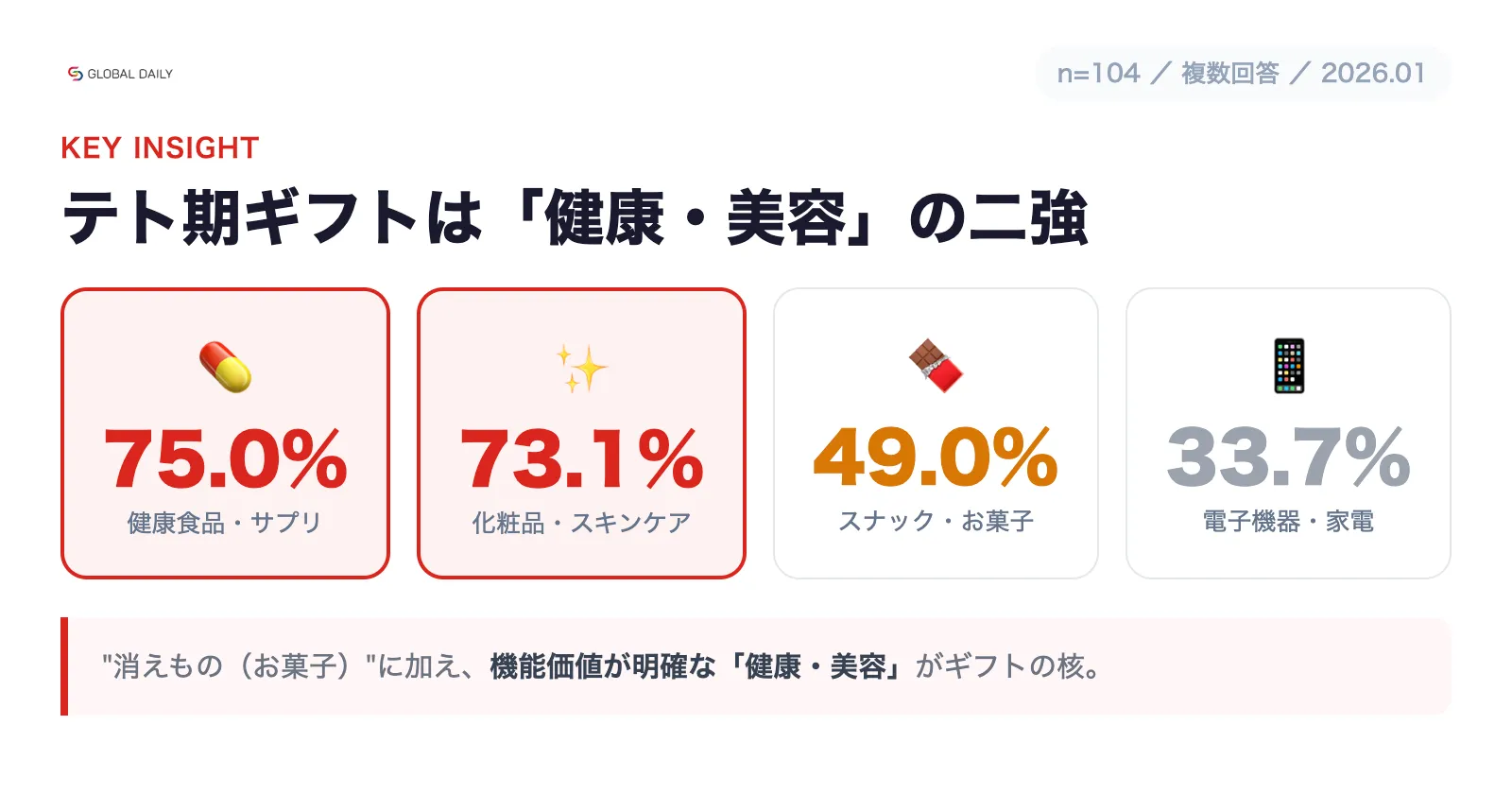 特に健康食品・化粧品領域でギフト需要が高いことが明らかになりました。