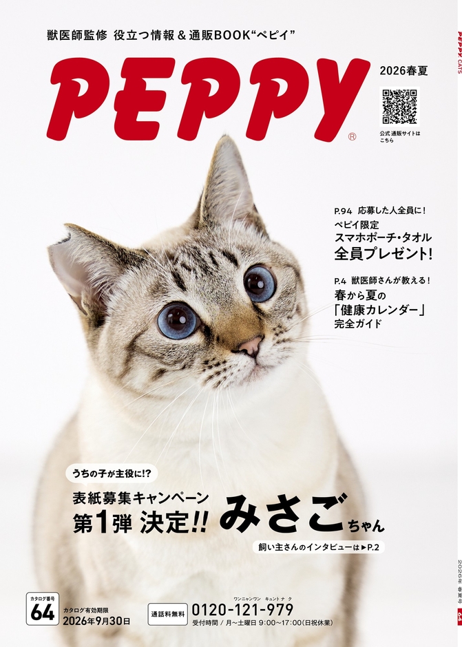 創業100年を越える新日本カレンダー株式会社の一事業であったPEPPY(ペピイ)は、2025年2月1日に分社化しました。社名であるPEPPYは「PET+HAPPY」の造語で、「人とPETのHAPPYな社会の実現」を企業理念に掲げています。今では全国8000軒の動物病院様に年間150万冊以上のカタログを無料配布しており、愛犬・愛猫との快適な暮らしに役立つ情報を獣医師監修・指導のもと、安心・安全・信頼できる情報として発信し、ECサイト「PEPPY」では7000点以上のこだわりの商品ラインナップでお客様のニーズに応えています。