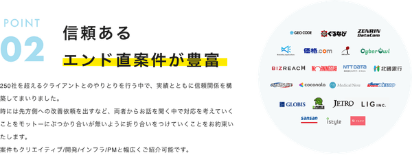②大手エージェントに引けを取らないクライアント直案件数
