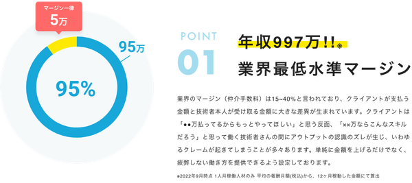 単純に仲介手数料の違いで金額が変わることもあるだろうが、クライアントとの繋がりや提案を含む営業力、稼働中の交渉能力で収入や働きやすさ、クレームの頻度など大きく変わってくるようだ。