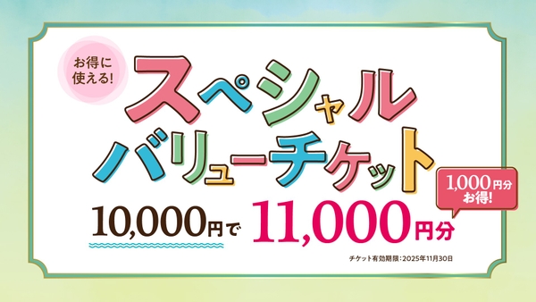 内容:バリューチケット10,000円をご購入いただくと、11,000円分としてご利用可能