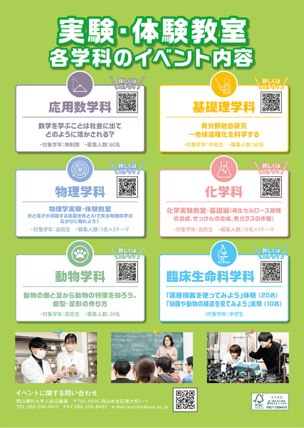 岡山理科大学理学部主催『実験教室・体験教室』を開催いたします。