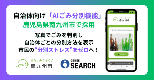 株式会社ジーニー(本社:東京都新宿区、代表取締役社長:工藤 智昭、以下ジーニー)は、当社が提供・開発するサイト内検索サービス「GENIEE SEARCH」において、ブラウザ上で動作するAIごみ分別機能の提供を開始したことをお知らせいたします。