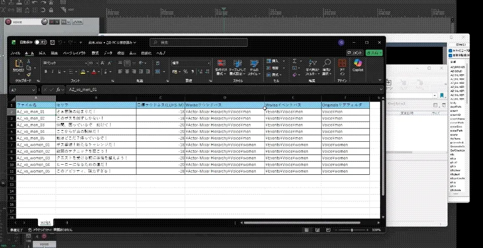 【REAPDOCK-Lua-】-051-【Excel】Perforceで管理された音声ファイルをExcelの表を基に設定し、Wwiseに自動実装(2)