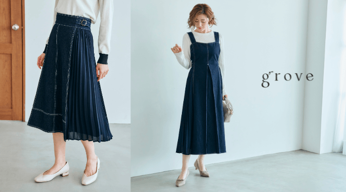 grove(グローブ) 人気アイテム“サイドプリーツスカート&ワンピ” 低身長・高身長さん向けサイズの新作発売