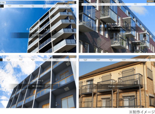 2018年より不動産会社向けに提供を開始した分譲マンションの物件特設サイトの制作サービスが起点となっており、