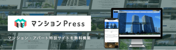 「マンションPress」は、当社が提供しているマンション・アパートの物件特設サイト制作の無料作成サービス。
