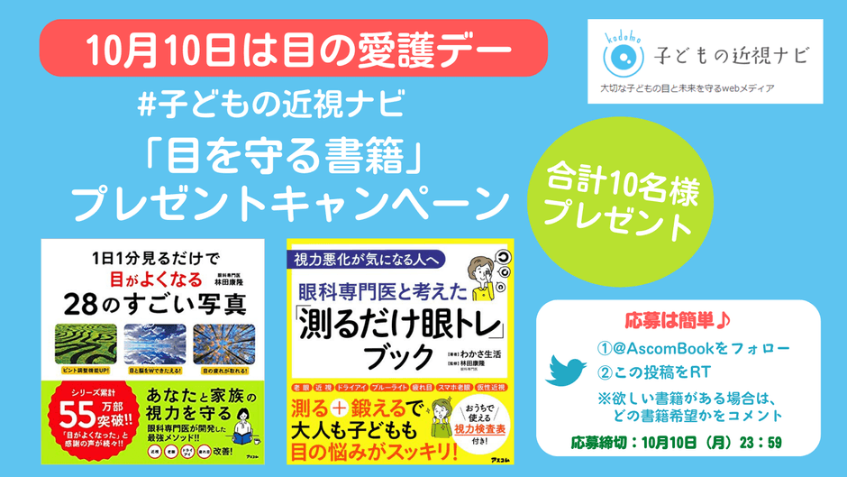 10月10日(月)の目の愛護デーにあわせ、「目を守る書籍プレゼントキャンペーン」を実施いたします。