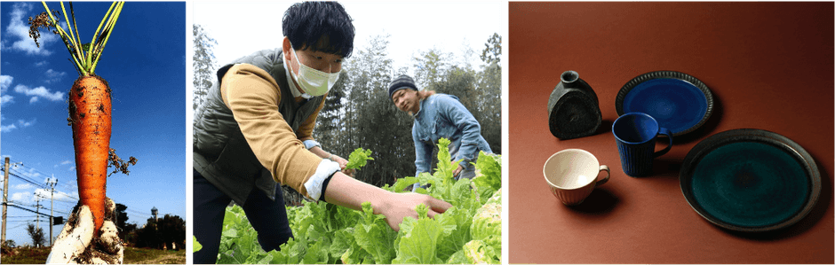 店舗に商品を提供する生産者たちは、その経歴も様々です。野菜を提供する農家の中には、8つの“移住者“農家のみで構成された「オーガニックファーマーズ」というチームがいます。糸島に魅了され移住してきた彼らは、BROF理論などの有機栽培技術を学びながら、糸島の自然と調和したこだわりの野菜を育てています。クラフトを提供する作家たちも、会社員を辞めて陶芸を始めた作家、夫婦で工房を開く作家、ヨットでの太平洋縦断の末陶芸に出会った作家など、個性あふれる“おもしろい”人たちが集まっています。
