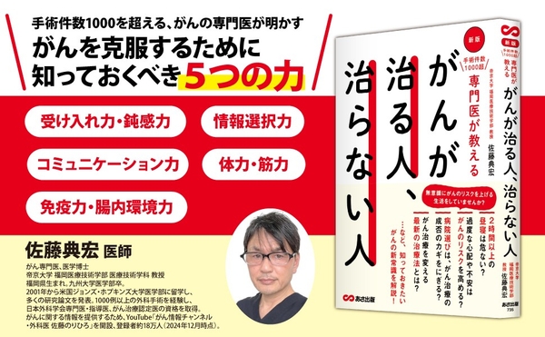 【がんを克服するために知っておくべき「5つの力」を解説!】がん専門医、医学博士 佐藤典宏 著『新版 手術件数1000超 専門医が教える がんが治る人、治らない人』2024年1月15日刊行