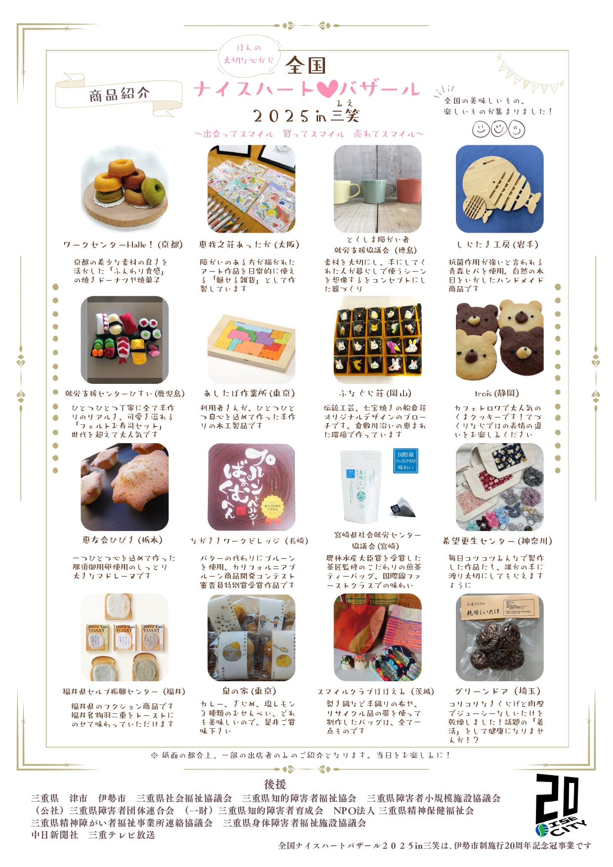 令和8年3月4日(水)三重県庁ロビー及び県民ホール、3月6日(金)~9日(月)おかげ横丁 特設屋台にて、「全国ナイスハートバザール2025 in 三笑」を開催します。