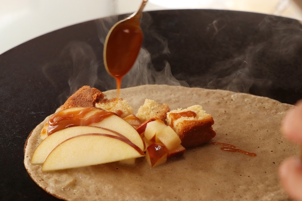 *りんごとシナモンケーキのデザートガレットは、キッチンカー「みちくさ」による販売