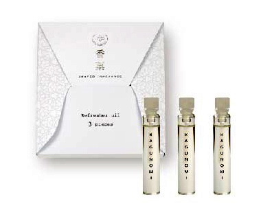 多くの方に好まれることから贈り物の香りとしてベストともいえる柑橘系の橘のオイルをセットした『香菓』。橘をイメージしたさわやかでやさしい柑橘系の香りは、心身の緊張をほぐしリラックスを促すともいわれています。