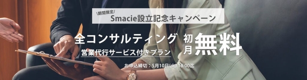 Smacie株式会社は、5年後の2027年度に売上高20億円以上(営業利益率70%以上)、上場、海外展開を見据えたスタートアップ企業。『Smacie』の意味は、スマート(Smart)に時代の最先端をゆく会社(Cie)だが、由来は「Sales=営業」「Marketing and Advertising=マーケティング」「Cutting Edge=最先端テクノロジー」「創業者Inoue=井上」の頭文字から来ており、営業とマーケティング、最先端テクノロジーの3つを組み合わせて新たな世の中を切り開いていくといったモチーフの企業ロゴをデザイン。