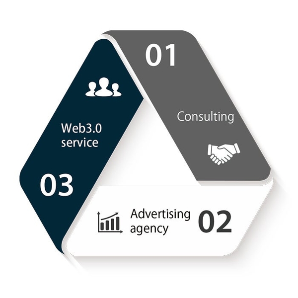 事業内容は『1. 総合コンサルティング』、『2. インターネット広告』、『3. Web3.0関連ビジネス』の3本柱で、これまでの常識を疑い世の中のスピーディな変化に対応し社会に価値あるサービスを提供し続けられるWeb3.0時代の先端企業を目指してまいります。