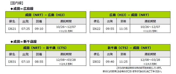 (国内線)成田=広島、新千歳