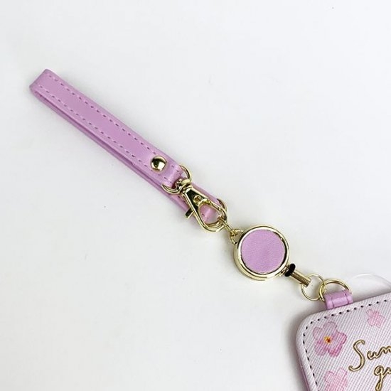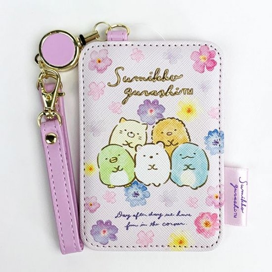 裏側にもすみっコぐらしがこんにちは♪ピンクとラベンダーカラーがマッチして、とてもお上品なパスケースとなっています。キャラクターたちがお花を持っているのもとってもキュートですよね!