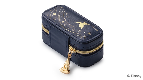 『ファンタジア』をモチーフにしたジュエリーケース。魔法使いの弟子「ミッキー」が魔法を放つシーンをイメージして、ゴールドの箔押しでデザインしています。「ミッキー」の帽子モチーフのファスナーチャームがワンポイントに。
