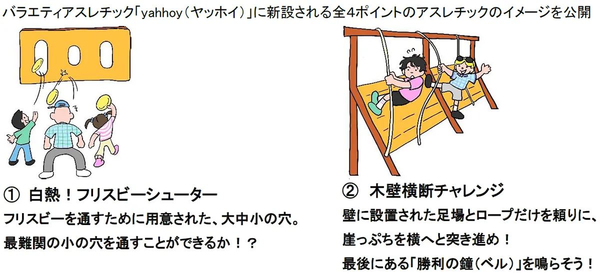 バラエティアスレチック「yahhoy(ヤッホイ)」に新設される全4ポイントのアスレチックのイメージを公開