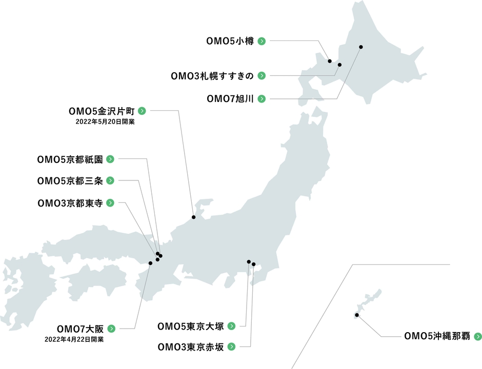 OMO7旭川、OMO5小樽、OMO3札幌すすきの、OMO3東京赤坂、OMO5金沢片町、