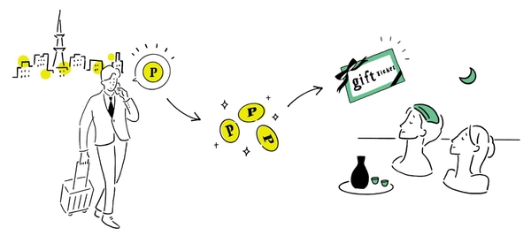 貯まったポイントは、全国の星野リゾートで使える「星野リゾート宿泊ギフト券」に交換できます。OMOの他にも、独創的なテーマを紡ぐ「星のや」、温泉旅館「界」、自然を体験するリゾート「リゾナーレ」、ルーズなカフェホテル「BEB(ベブ)」など、全国の星野リゾート運営の宿泊施設で利用できます。ビジネス利用の宿泊によって貯まったポイントを使えば、休暇時には全国のさまざまな個性を持つ宿泊施設で旅を楽しむことができます。