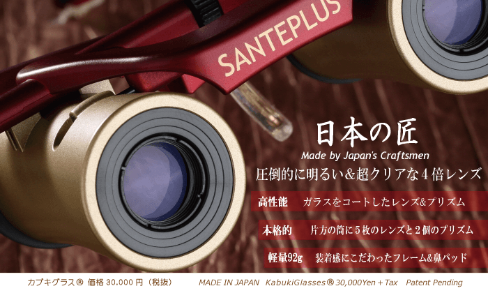 「カブキグラス」は、坂田氏自らの観劇体験を元に、どの席から見ても「席をアップグレードしたい」という思いを実現させるために日本の様々な分野の匠の技術を結実して制作された究極のシアター&スポーツグラスです。